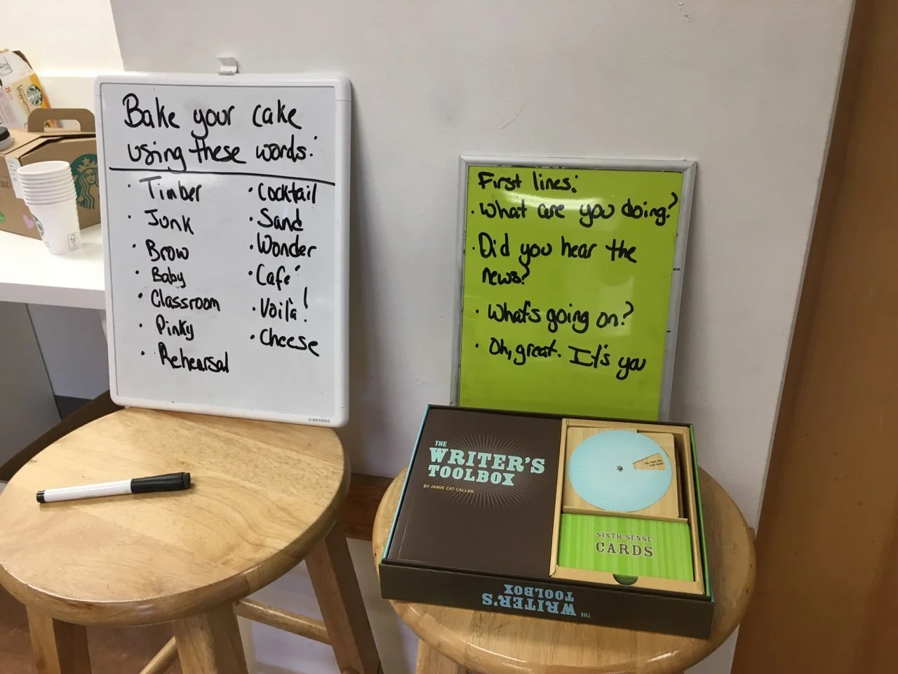 Rain City Projects hosts writing events. Participants bring a laptop or notebook, grab a hot beverage and sustenance, join other playwrights around a table (or Zoom virtual room) for a group writing session. We provided writing prompts, but some writers work independently on their own plays. It's an excuse to write, sure, but we all need deadlines.