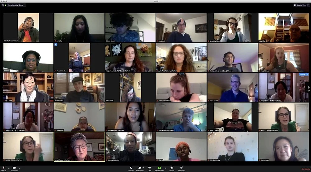 Virtual play readings created in response to the quarantine restrictions. During each of these popular Zoom events, two playwrights share 20-30 minutes of their work with up to the 30 theatre artists, all from the comfort of their homes. Readers volunteer from the virtual audience, RCP board members facilitate, tracking time, and moderating the constructive feedback.